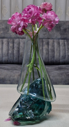گلدان شیشه ای با پایه سنگ معدن طبیعی