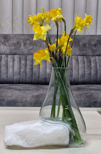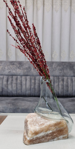 این گلدان، دستساز می باشد و ترکیب شیشه و سنگ نمک طبیعی باعث شده است تا یک اثر هنری منحصر به فرد خلق شود. این محصول بسیار زیبا و خاص فضای منزل شما را دلنشین تر می کند و مطمئنا هربار از دیدنش لذت خواهید برد چون جلوه بیشتری به گل طبیعی یا گل خشک درون آن می دهد.