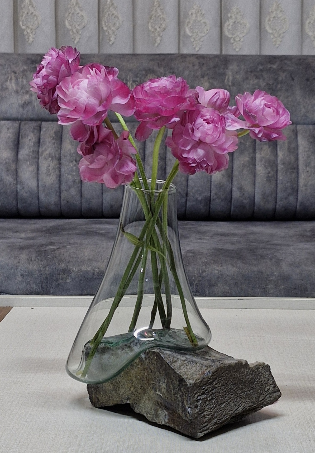اگر به دنبال یک گلدان فانتزی خاص هستید که هم جلوهای لوکس به دکور منزلتان بدهد و هم با انرژی طبیعی محیط را آرامتر کند، گلدان سنگ و شیشه دفرمه بهترین انتخاب است.
