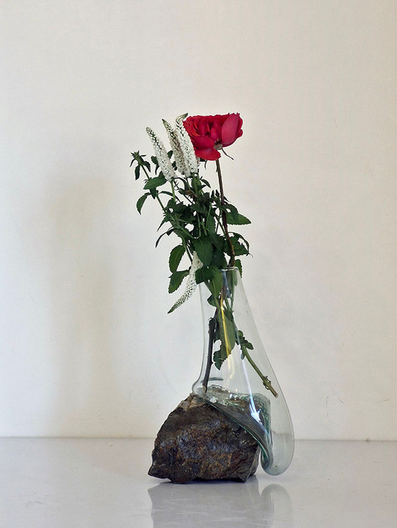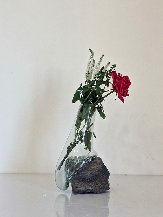 گلدان شیشه ای با پایه سنگ معدن طبیعی